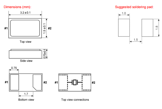 standard ± 100 ppm, available ± 15 ~ ± 100 ppm